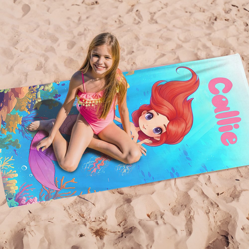Avec ses couleurs vives et ses éléments océaniques dynamiques, cette serviette de plage émerveille les enfants. Elle est ornée d’un motif enchanteur de princesse sirène, plongeant les petits dans un monde marin magique et plein de rêve. Vous pouvez également personnaliser le prénom de votre enfant pour mettre en valeur sa personnalité unique.